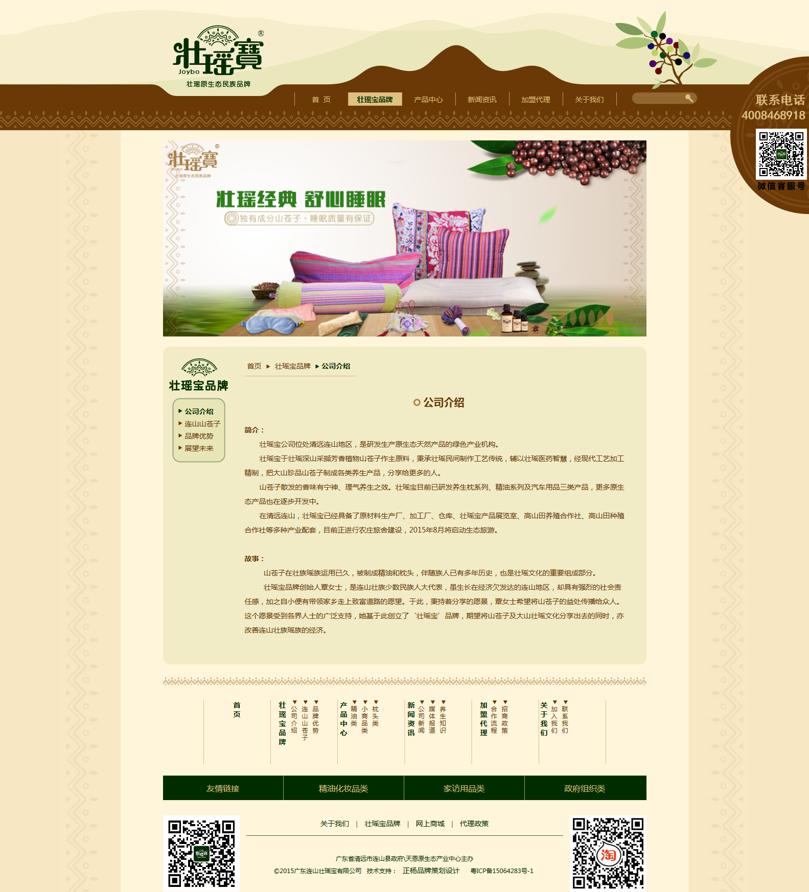 客户:壮瑶原生态民族品牌行业:壮瑶原生态民族品牌—壮瑶宝山苍子养生枕、草本精油、养生专家服务:品牌形象设计 / 网站设计